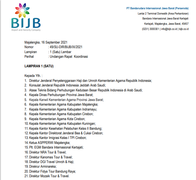 SURAT DARI BIJB KERTAJATI MAJALENGKA JAWA BARAT